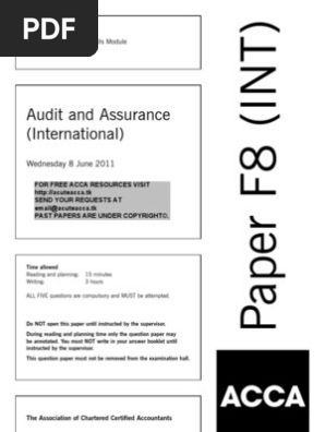 Acca F8 Audit And Assurance Aa Int Uk Complete Text 2011 Acca Past Papers F8 December 2011