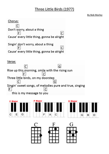 Three Little Birds Sheet Music Bob Marley Guitar Chords Lyrics Beginner Three Little Birds Piano Chords