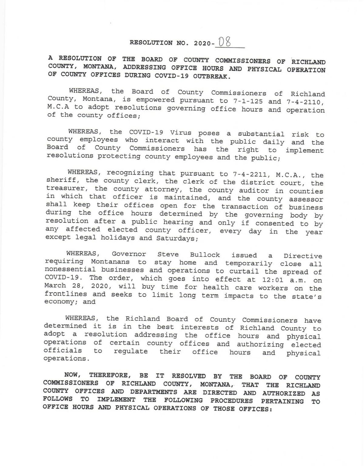 Richland County Issues Resolution Setting Office Hours Board Resolution For Account Closing www.sidneyherald.com