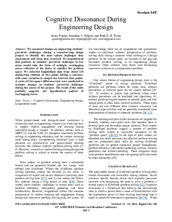 Pdf Cognitive Dissonance During Engineering Design Jonathan Define Cognitive Dissonance www.academia.edu