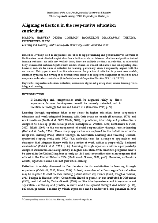 Pdf Aligning Reflection In The Cooperative Education Curriculum Manna Acronyms For Kingdom Building