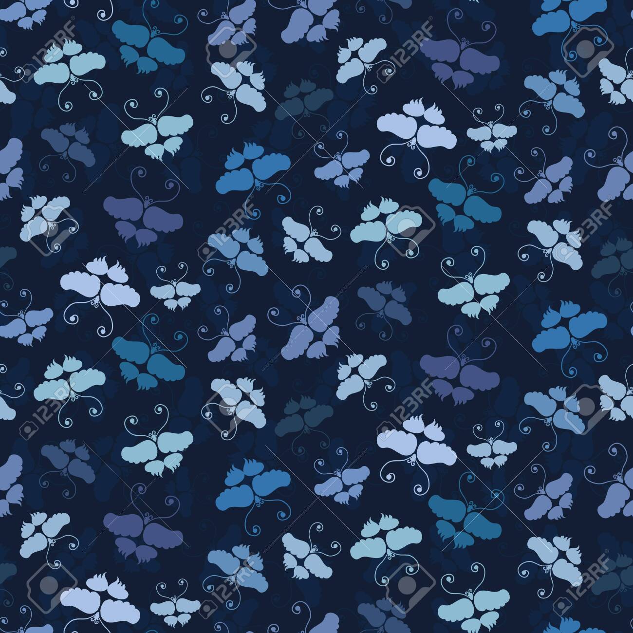 Classic Blue Butterfly Wax Resist Dye Vector Seamless Pattern Masculine Background Pattern
