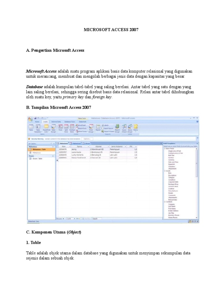 Microsoft Access 2007 Primary Key Di Microsoft Access Digambarkan Dengan id.scribd.com