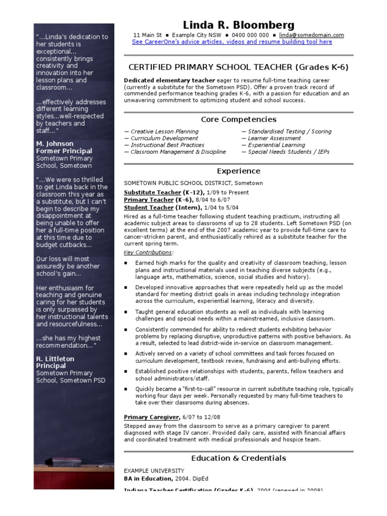 Cv Template School Teacher Doc Teachers Special Education Primary School Teacher Cv es.scribd.com