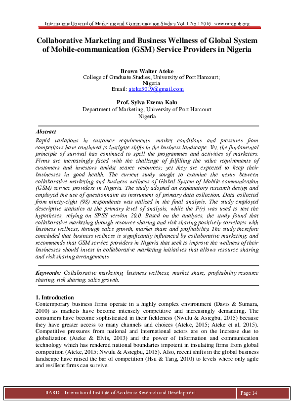 Pdf Collaborative Marketing And Business Wellness Of Global Research In Marketing Volume 1 www.academia.edu
