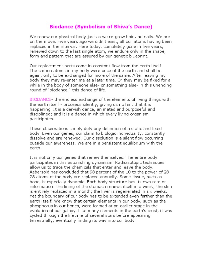 Biodance Dance Of Shiva Shiva Stars Free 30 Day Trial Scribd The Dance Of The Carbonatom