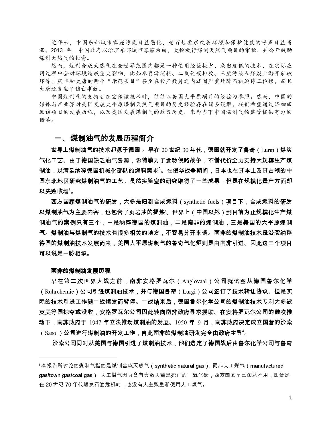 Mr Yang S Report On The Coal Based Nature Gas Industry By China Unfulfilled Promise Of Synthetic Fuels Technological Failure Policy Immobilism Or Commercial Illusion
